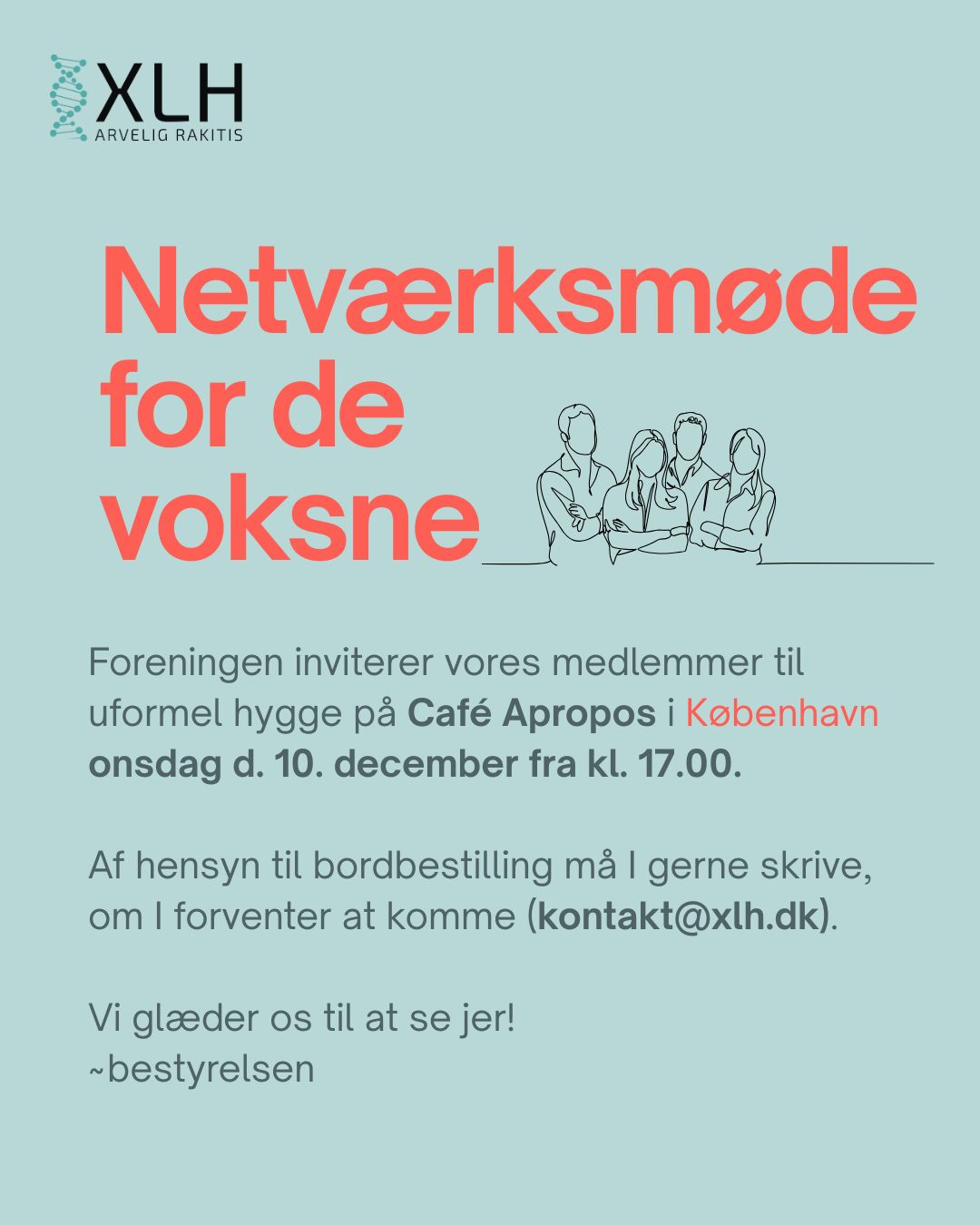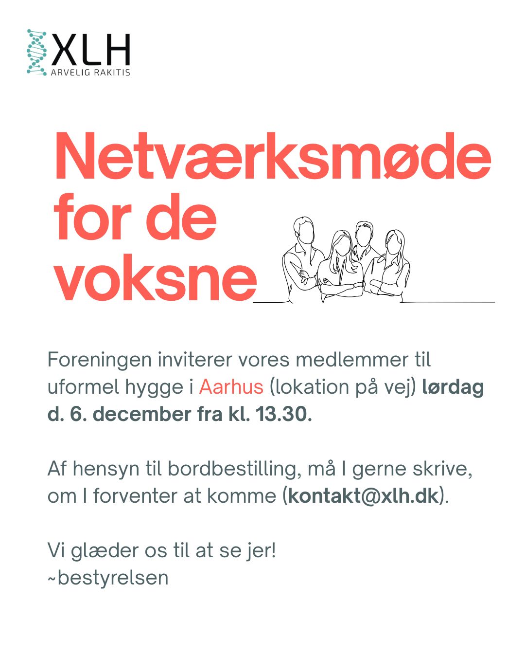 XLH, arvelig rakitis inviterer til netværksmøde for vores medlemmer i både København og Aarhus.
